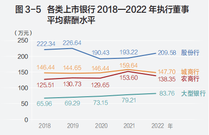 各类上市银行2018-2022年执行董事平均薪酬水平(图表源于《报告》)