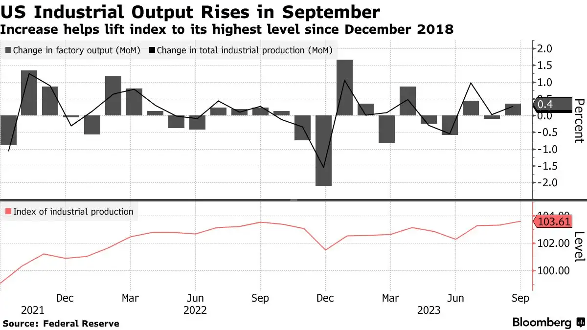 强劲的需求有助于支撑美国的制造商。美联储的美国工业生产指数在采矿业和制造业的强势带动下,在9月份升至近五年来的最高水平。消费品和建筑用品生产的回升推动了上个月的工厂产出。Thiagamoorthy说: