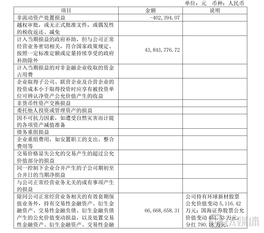 在今年上半年之所以能扭亏为盈是凭借政府补贴和炒股所获收益。具体来看,今年上半年,公司计入当期损益的政府补助金额为4384.38万元;炒股所获收益共计5569.2万元,其中公司持有(06616.HK)股票公允价值变动5116.42万元、(000750.SZ)股票公允价值变动451.53万元。