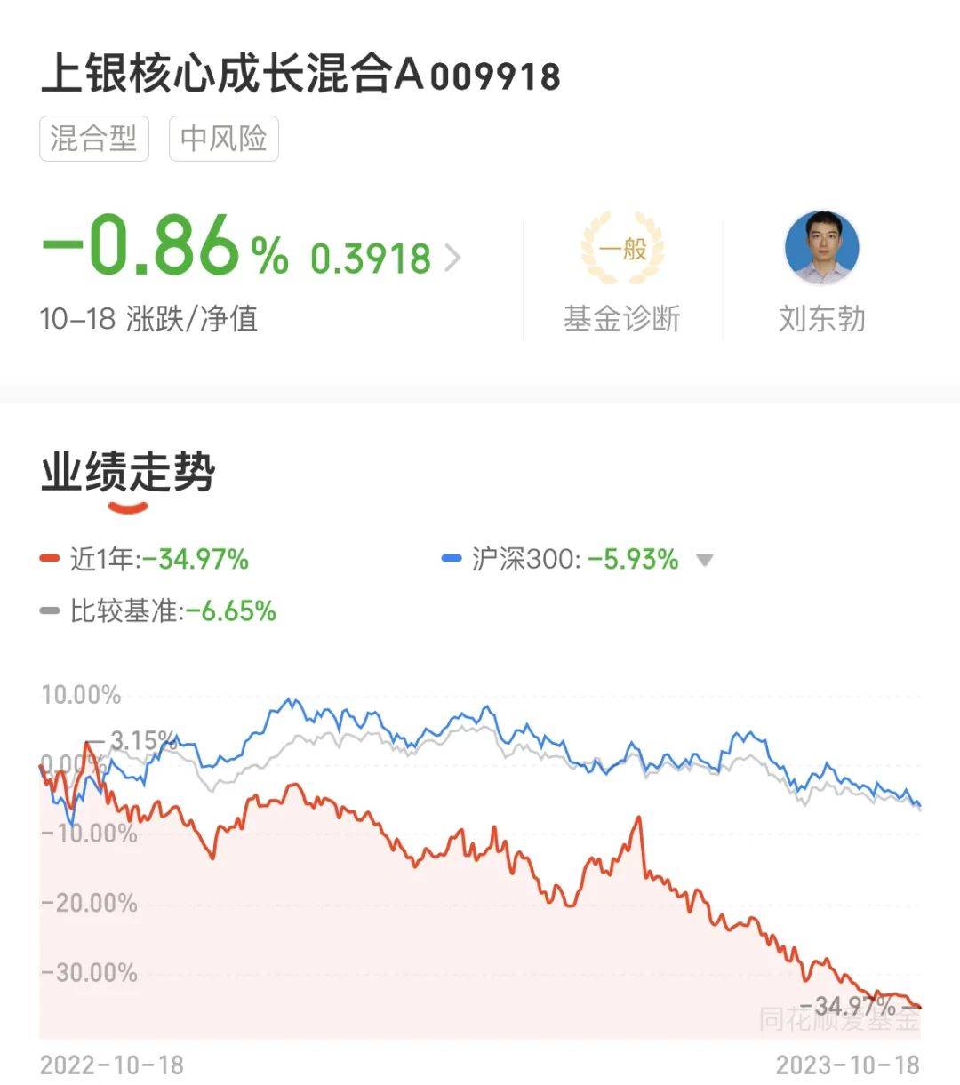 然而,该只基金自成立以来,似乎并未捕获到成长股的超额收益,反倒出现了较大亏损。最新基金净值已经亏到4毛钱以下,Choice数据显示,截至10月18日,该只基金成立至今净值亏损超过60%,A、C份额最新净值分别为0.3918元和0.3881元。