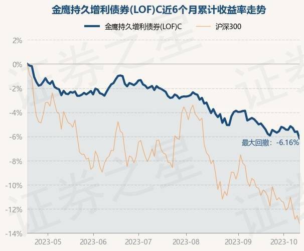 证券之星消息,10月18日,金鹰持久增利债券(LOF)C最新单位净值为1.2901元,累计净值为1.7958元,较前一交易日下跌0.61%。历史数据显示该基金近1个月下跌1.05%,近3个月下跌4.12%,近6个月下跌6.18%,近1年下跌7.68%。该基金近6个月的累计收益率走势如下图: