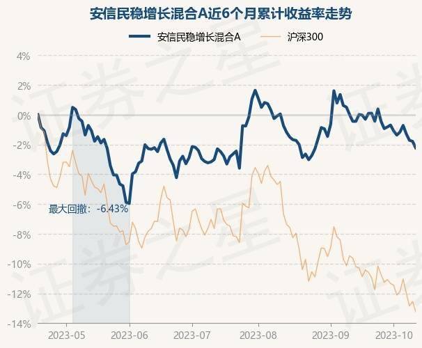 证券之星消息,10月18日,安信民稳增长混合A最新单位净值为1.3174元,累计净值为1.3684元,较前一交易日下跌0.45%。历史数据显示该基金近1个月下跌1.91%,近3个月上涨1.11%,近6个月下跌2.25%,近1年上涨3.38%。该基金近6个月的累计收益率走势如下图: