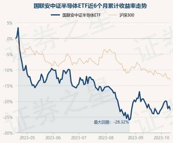 证券之星消息,10月18日,国联安中证半导体ETF最新单位净值为0.8115元,累计净值为1.623元,较前一交易日下跌1.43%。历史数据显示该基金近1个月下跌0.55%,近3个月下跌11.08%,近6个月下跌22.7%,近1年上涨1.16%。该基金近6个月的累计收益率走势如下图: