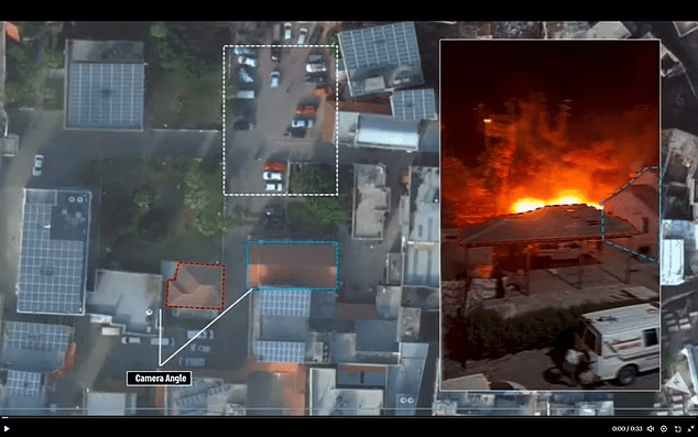 以色列军方卫星图像显示医院的停车场,医院后来开始爆炸。