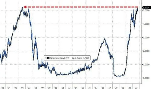 2年期美债收益率上涨11.5个基点报5.224%,进一步刷新了2006年以来的最高位。