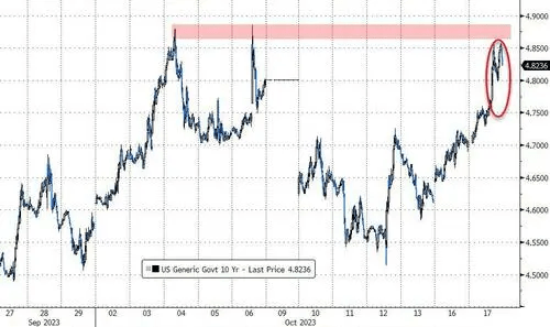 当前10年期利率距离5%的关口很近,且中间没有太多障碍,所以在短期内突破该水平的可能性很大。