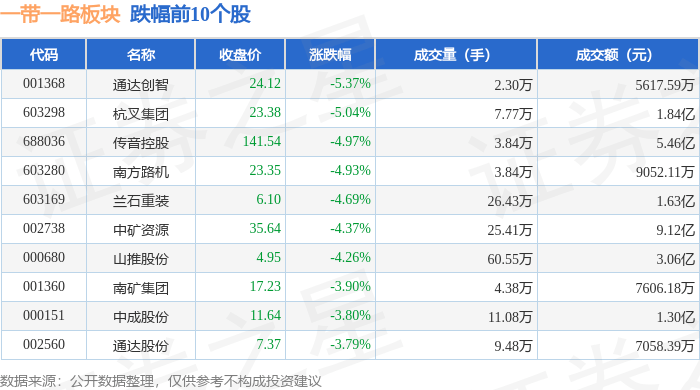 证券之星消息,10月18日一带一路板块较上一交易日下跌0.99%,通达创智领跌。当日上证指数报收于3058.71,下跌0.8%。深证成指报收于9816.68,下跌1.24%。一带一路板块个股涨跌见下表: