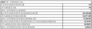 2. 出席2023年第一次A股类别股东大会现场会议和网络投票的股东及股东代理人合计146人,代表有表决权股份数额144,071,896股,占公司有表决权A股股份总数的42.7343%。