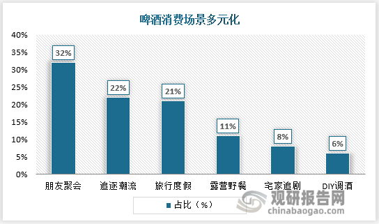 与此同时,重庆、武汉、北京、上海等全国各地的啤酒节和相关活动也在增加,其中很多活动专门推广精酿啤酒文化。此前由啤酒协会组织的北京精酿啤酒节,吸引了超2万人的参与,因为人群数量超过预期,为了更好的体验,活动次日扩大了一万平米的草坪面积,供爱好者躺着喝。三天的活动,啤酒销售总量超过2.5万升。今年的青岛啤酒节,精酿啤酒也强势加盟,为期10天的2023山东(青岛)RCEP首届精酿啤酒美食节,线上线下活动吸引百万人参与,精酿啤酒从小众逐渐向大众场景渗透。百威投资者研讨会显示,目前我国啤酒消费场景已初现多元化趋势,催生露营野餐(11%)、DIY调酒(6%)、户外 BBQ(32%)、旅行度假(21%)、追逐潮流(22%)、宅家追剧(8%)等新消费场景。目前精酿啤酒已经有连锁型酒馆、自酿酒吧、餐酒吧、打酒站等现场售卖模式,也进入了新零售、电商,甚至线下零售渠道。未来随着消费升级,Z世代更加注重个性和情感诉求,精酿啤酒产品和消费场景也将逐渐向多元化发展。