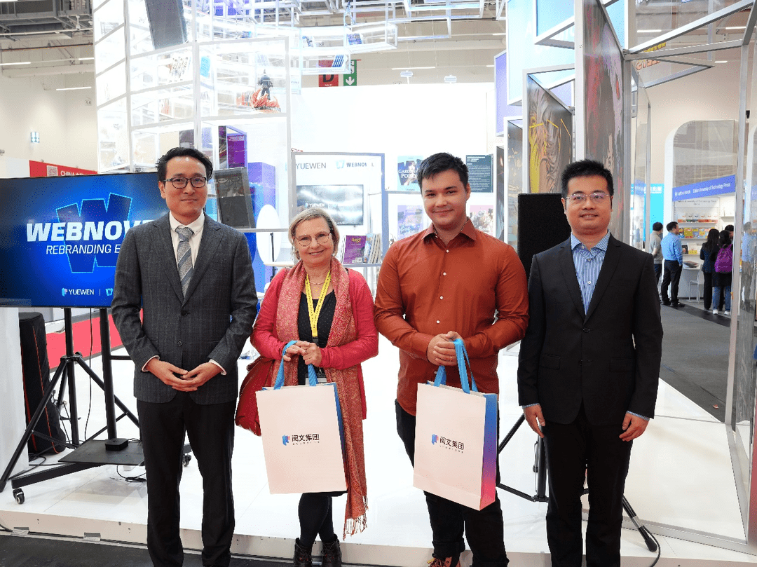 同日,阅文集团旗下海外门户起点国际(WebNovel)在书展现场举办了品牌升级仪式。法兰克福书展副主席柯乐迪,上海世纪出版集团总裁阚宁辉,阅文集团副总裁、总编辑杨晨,阅文集团海外业务总经理赵必鹏和英国网络文学作家卡文(JKSManga)出席活动,见证起点国际的全新品牌主张“阅冒险,阅精彩”和全新品牌标识启用。