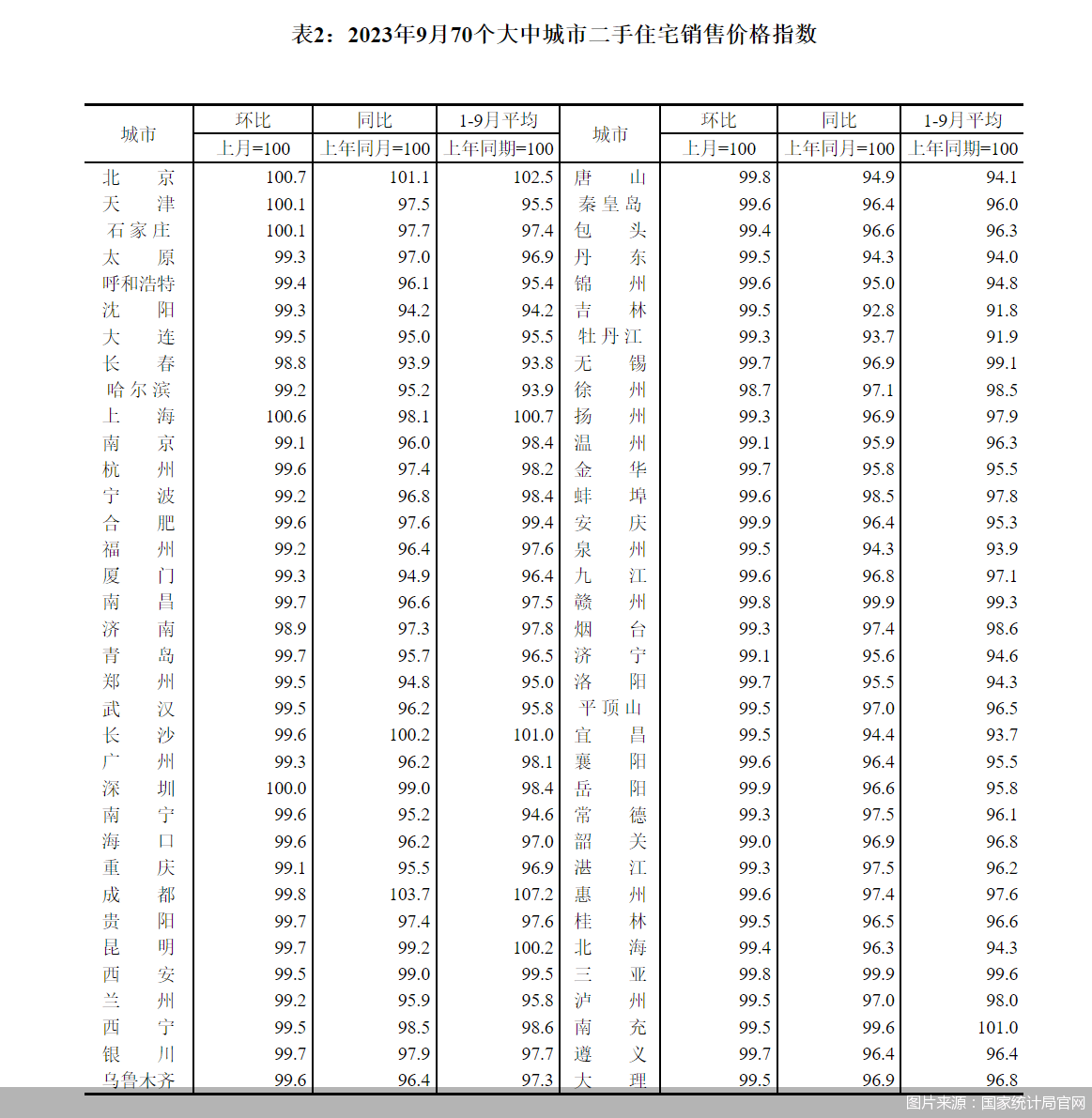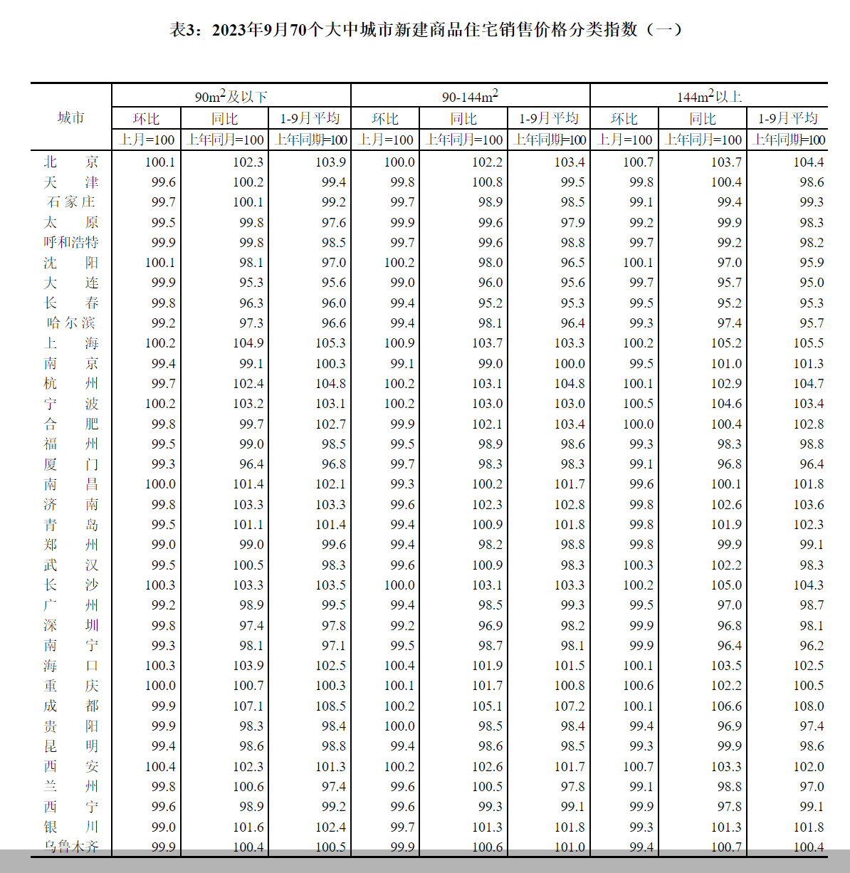 这也导致9月70个大中城市中,新建商品住宅销售价格同比下降城市有45个,比上月增加1个,较年内高点减少10个;二手住宅销售价格同比下降城市有67个,比上月增加1个。
