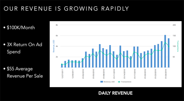 在PC端,有很多方法来讲好“需求的故事”。在我之前的创业案例中,我为项目建立了一个网络商店,并做了各种疯狂的营销实验,来产生持续不断的预约量。这让我们能在融资时把下面这张图放进PPT里——即使那时产品还不能跑: