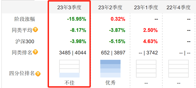 不过,天天基金网数据显示,2023年三季度,中银创新成长混合A份额净值下跌达15.95%,基金C份额净值下跌达16.04%。而同期,同类平均跌幅为8.17%,沪深300指数跌幅为3.98%,中银创新成长混合跌幅远高于同类平均和沪深300指数。