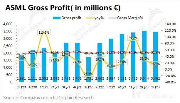 1.2 毛利及毛利率:阿斯麦(ASML)在 2023 年第三季度实现毛利 34.62 亿欧元,同比增长 15.6%。具体毛利率方面,公司本季度毛利率 51.9%,环比有所走高。在中国地区的需求带动下,ArFi 等产品的出货量和均价都有明显提升。