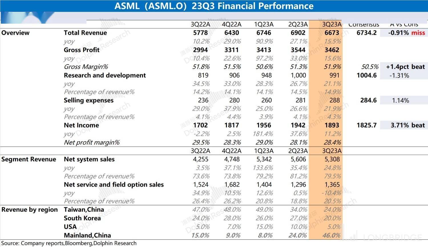 整体来看:(ASML)收入端略低于市场预期,而毛利率的超预期表现,最终带来利润端的小超预期。从数据来看,阿斯麦(ASML)本季度是基本符合预期的。