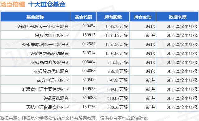 重仓汤臣倍健的前十大公募基金请见下表: