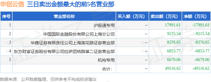 沪深交易所2023年10月19日公布的交易公开信息显示,华创云信(600155)因非ST、*ST和S证券连续三个交易日内收盘价格涨幅偏离值累计达到20%的证券登上龙虎榜。此次是近5个交易日内第1次上榜。