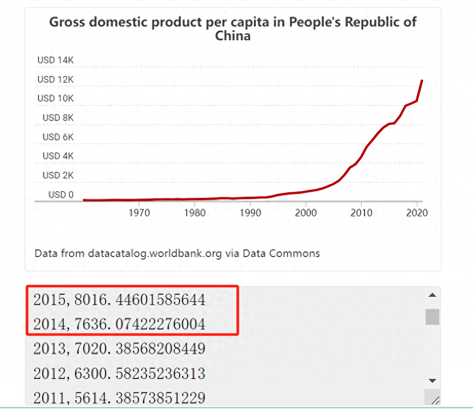 中国人均 GDP 近 50 年变化情况| 来源:Datacommons