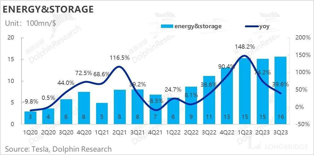 整体上随着储能业务的放量,和毛利率的提升,的能源业务已逐步推进成为一个远期有故事、短期有落地,但长期业务壁垒不高。这个业务主要在于成长性上,而目前就特斯拉股价而言,这个业务已经全面被打入了估值。