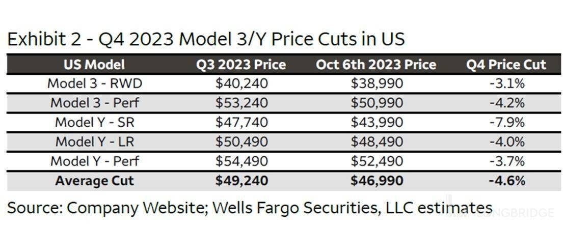 2)而美国市场,进入 10 月已经进入了新一轮的降价周期,10 月 6 日的 3、Y 的普降价格后,平均价格降幅已有 4-5%。