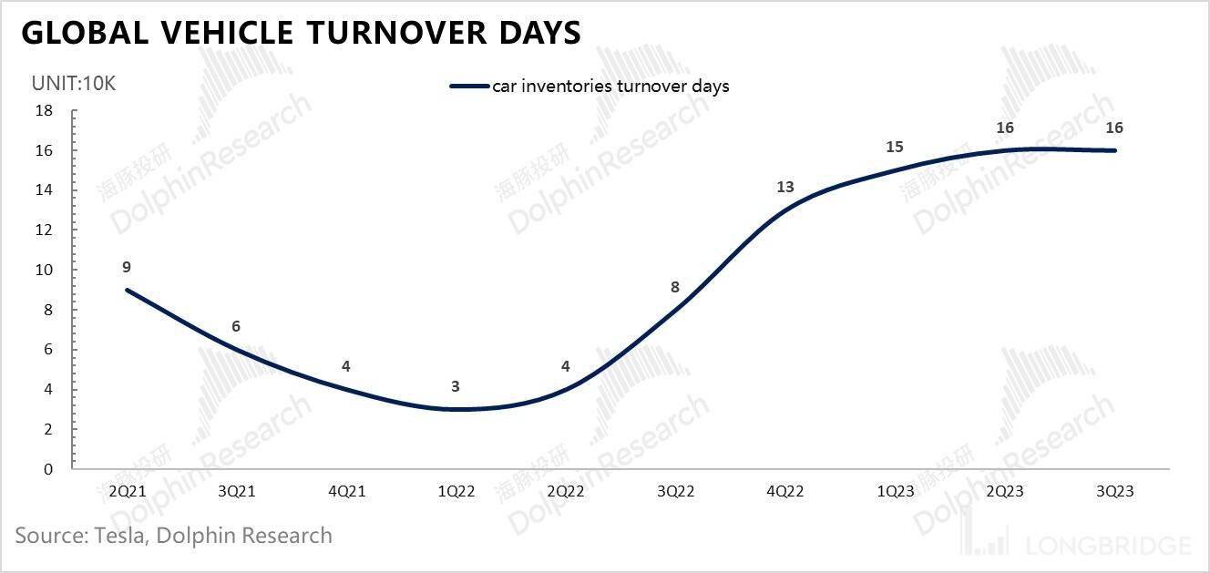 但海豚君开始注意到一些变化:三季度上海工厂关停的背后明面是汽车换新,但提车周期的变化以及之前存货周转天数的变长本来也隐含着一定销售端压力;特斯拉在近期对投资者的沟通中确实也表达了一定的让步——后续奥斯汀工厂和德国工厂产能爬坡会放缓,它在目标上放弃了这两家工厂稳态各自周产一万台的目标。而原因是,德国工厂是因为 24/7 无休倒班对柏林工厂来说劳工法问题成本太高,算不过来账;而奥斯汀工厂还在爬坡,但周产也就是在 5k-10k 之间。