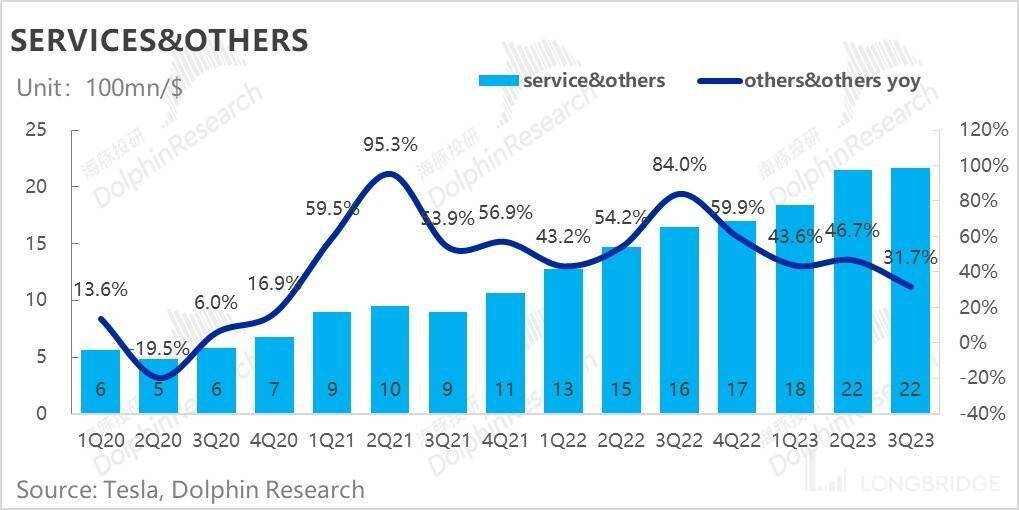 这个季度服务业务在的主要边际增量来源于第三方的付费充电业务、保险业务,海豚君估值二手车随着新能车新车在 4S 店中的堆积,业务应该已转冷。