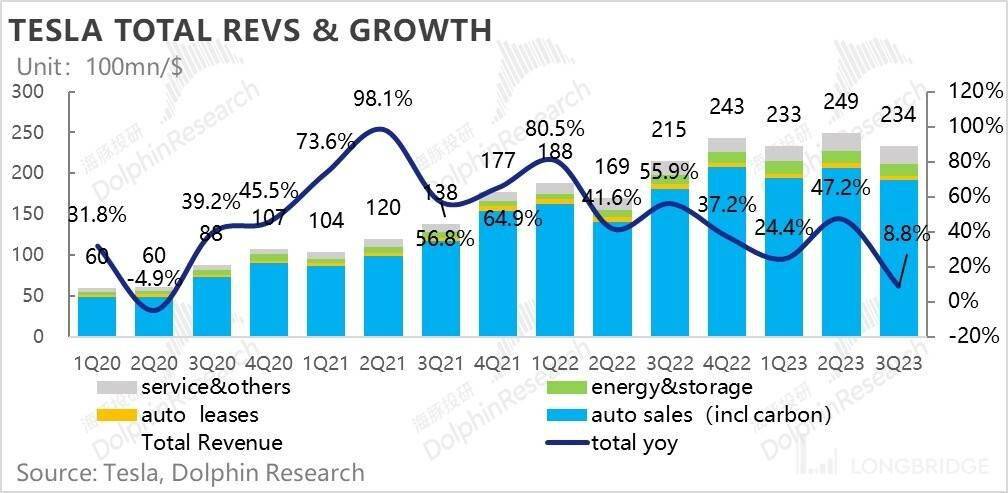 2023 年三季度营收 233.5 亿美元,同比增速勉强 9%,明显低于彭博上的卖方一致预期 246 亿美金。