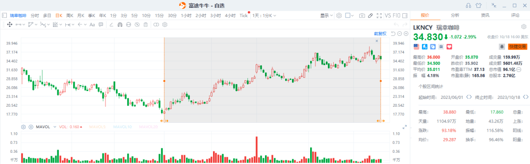 自6月初瑞幸开启9.9价格战以来,短短四个月的时间,瑞幸股价已涨超100%。