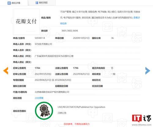 早在 2020 年,华为就申请了两枚“花瓣支付”的商标,而那时,华为尚未取得支付牌照。