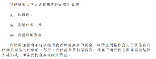 换句话说,主要是由加盟商与消费者进行以旧换新,而非梦金园自己。根据《招股书》,加盟商还以黄金旧料来抵消从梦金园买货的货款。