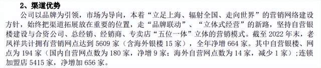老凤祥渠道 摘自《老凤祥2022年年报》