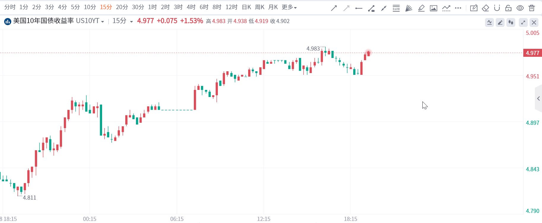 周四,在交易员等待美联储主席鲍威尔重磅讲话之前,美国国债收益率再度全线飙升,10年期国债收益率进一步逼近5%关口,盘中最高触及4.983%的16年新高,为连续第四日上涨,本周飙升超过30个基点。