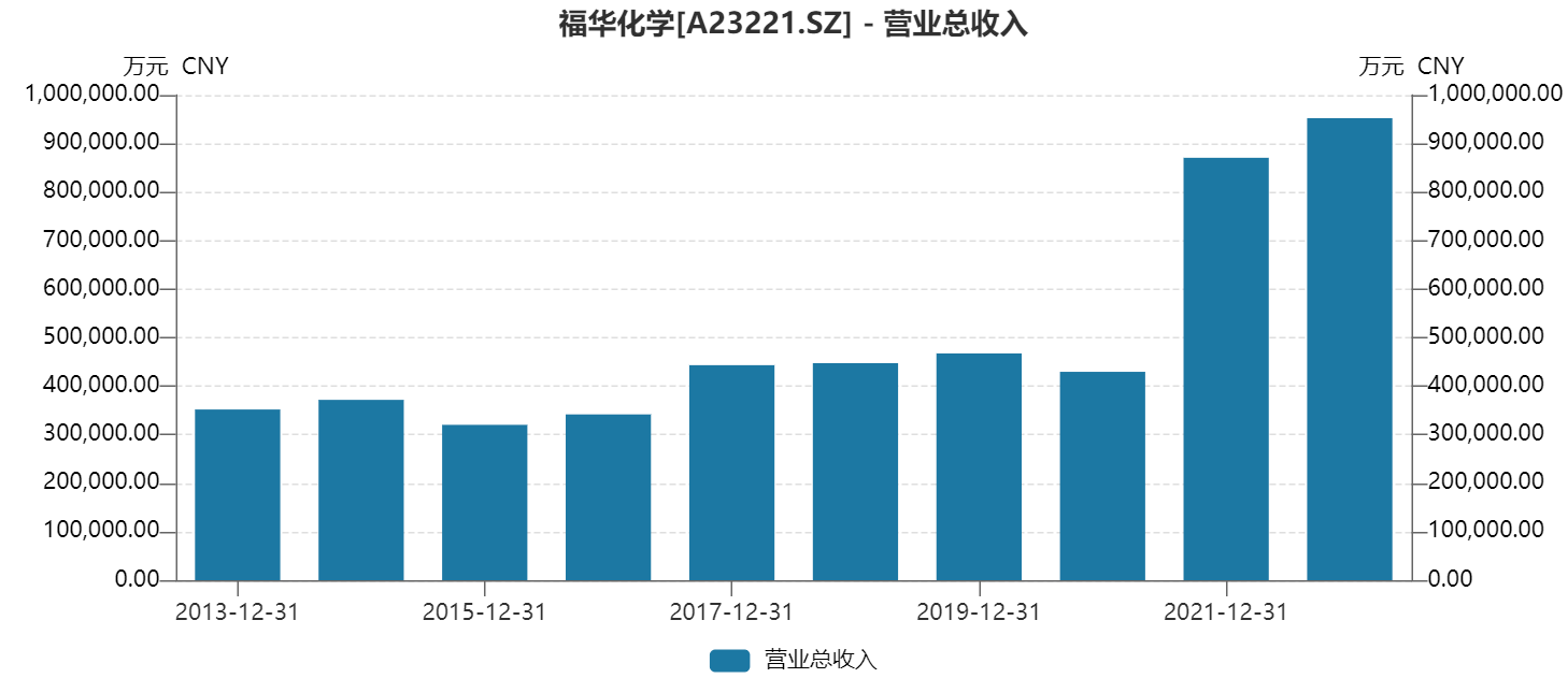 2021年和2022年期间,福华化学营业收入分别为87.12亿元和95.28亿元,分别同比增长102.7%和9.37%。