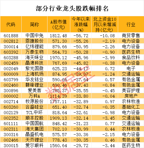 多只行业龙头股价创年内新低