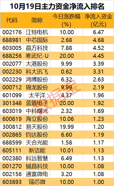 从个股来看,今日共有19股主力资金净流入超1亿元,其中8股获净流入超2亿元。