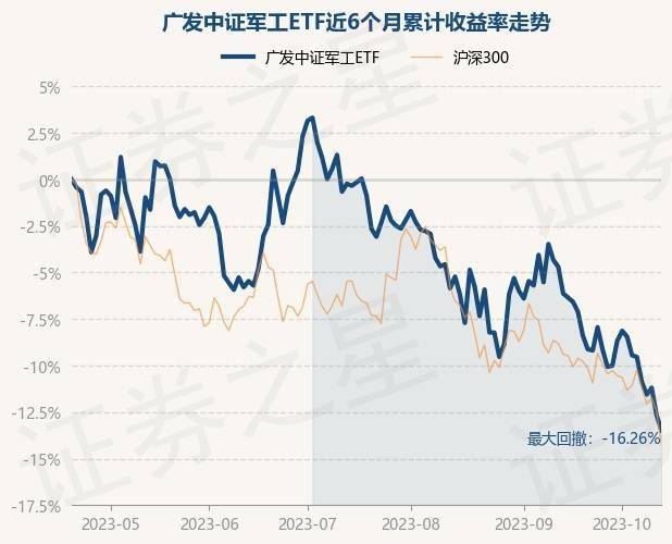证券之星消息,10月19日,广发中证军工ETF最新单位净值为0.9754元,累计净值为0.9754元,较前一交易日下跌0.93%。历史数据显示该基金近1个月下跌5.56%,近3个月下跌12.71%,近6个月下跌13.44%,近1年下跌17.38%。该基金近6个月的累计收益率走势如下图: