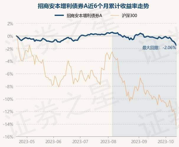 证券之星消息,10月19日,招商安本增利债券A最新单位净值为1.5107元,累计净值为1.6547元,较前一交易日下跌0.36%。历史数据显示该基金近1个月下跌1.16%,近3个月下跌1.8%,近6个月下跌1.5%,近1年上涨0.03%。该基金近6个月的累计收益率走势如下图: