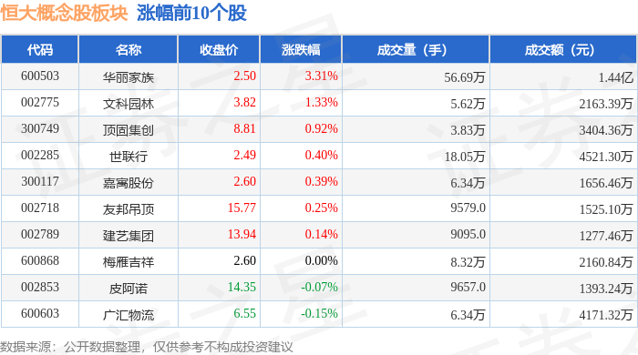 北向资金方面,当日恒大概念股板块北向资金持股市值为22.49亿元,减持0.61亿元。其中增持最多的是梅雁吉祥,增持了342.22万元。减持持最多的是广汇能源,减持了0.38亿元。恒大概念股板块北向资金持股变动明细见下表: