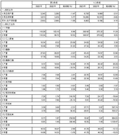 经兖矿能源集团股份有限公司(“公司”)内部统计,2023年第三季度,公司及其附属公司煤炭业务、煤化工业务主要运营数据如下表: