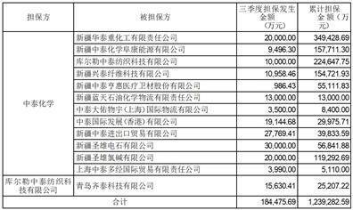 2023年7月1日至2023年9月30日,新疆中泰化学股份有限公司(以下简称“公司”、“中泰化学”)为下属公司、参股公司及下属公司之间提供担保共计184,475.69万元。具体情况如下: