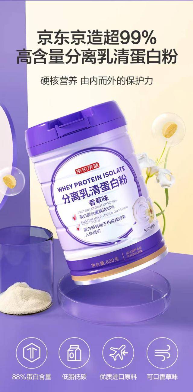 长期处于京东金榜的京东京造分离乳清蛋白粉,通过分离提纯工艺,产品蛋白含量高达88%,分离乳清蛋白添加量超99.3%,领先行业水平。
