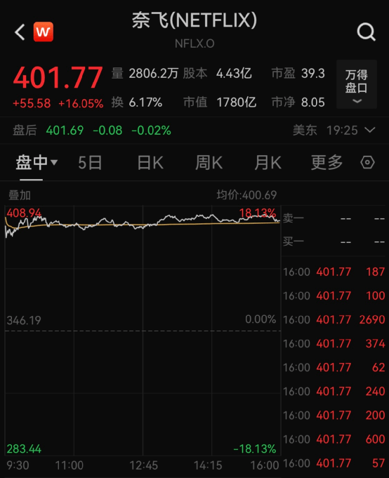 财报见喜,奈飞股价大涨