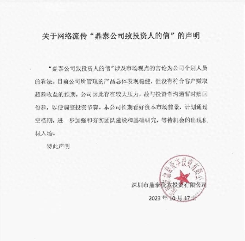 有意思的是,之后公司发了声明,说是因基金经理因身体健康原因和个人压力大,过度悲观,所以沟通中缺乏理性。