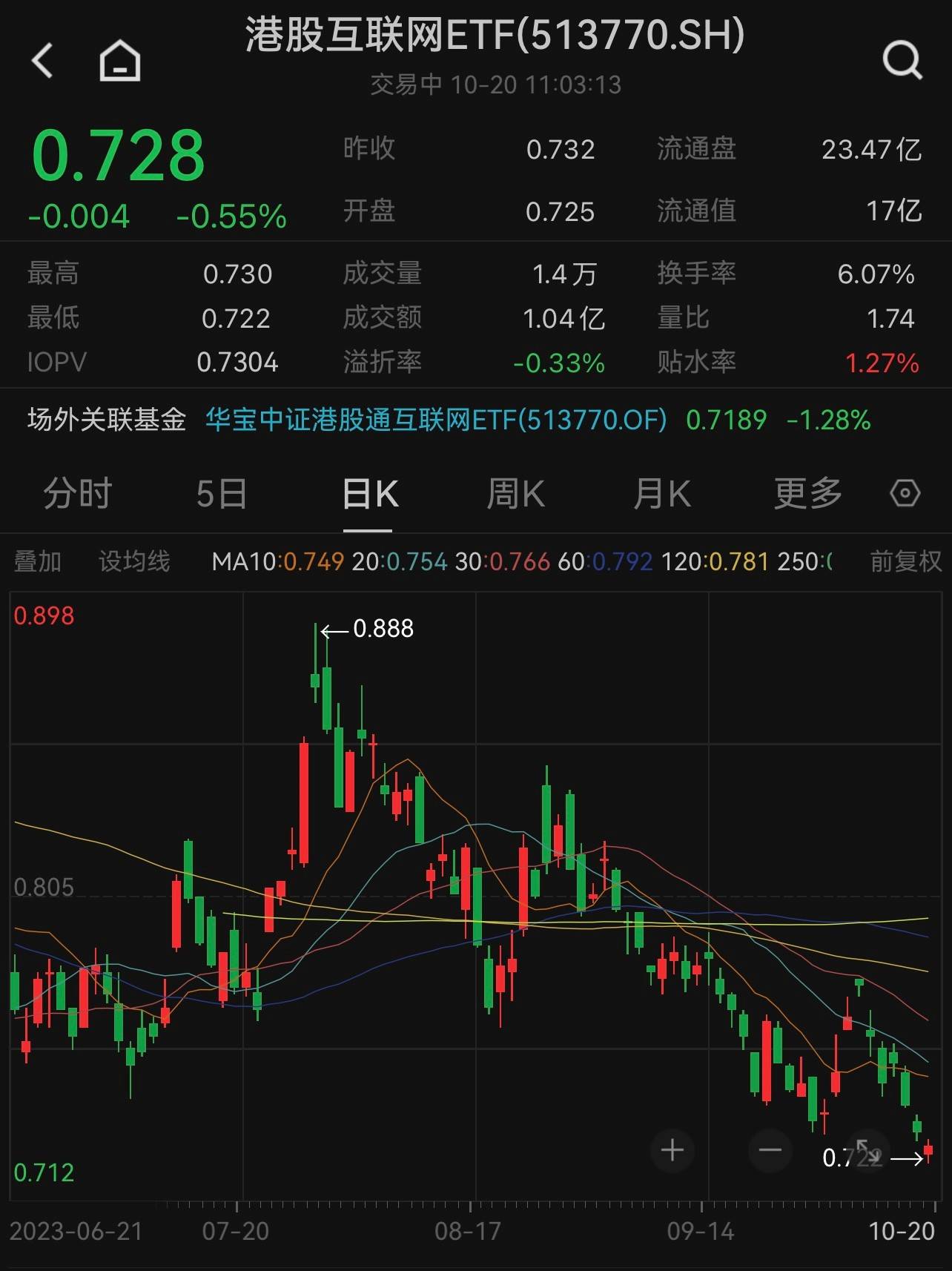 对标ETF方面,港股互联网ETF(513770)随指数探底回升,截至发文场内价格跌幅收窄至0.55%,成交额1.04亿元。