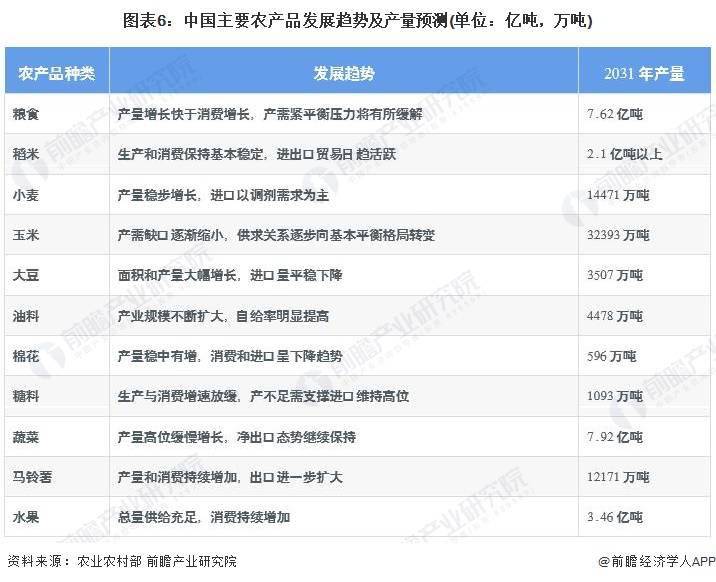 2022年4月,农业农村部发布的《中国农业展望报告(2022—2031)》报告中,对我国主要农产品未来10年生产、消费、贸易、价格走势进行了展望。农业市场发展趋势方面: