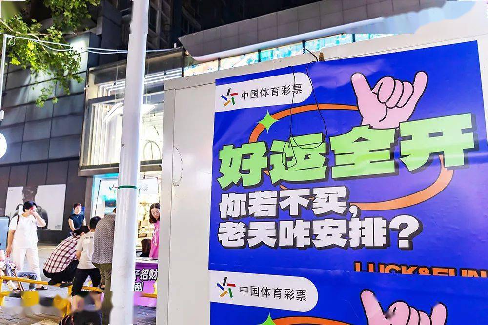 2023年9月12日,郑州,夜市上的中国体彩广告。