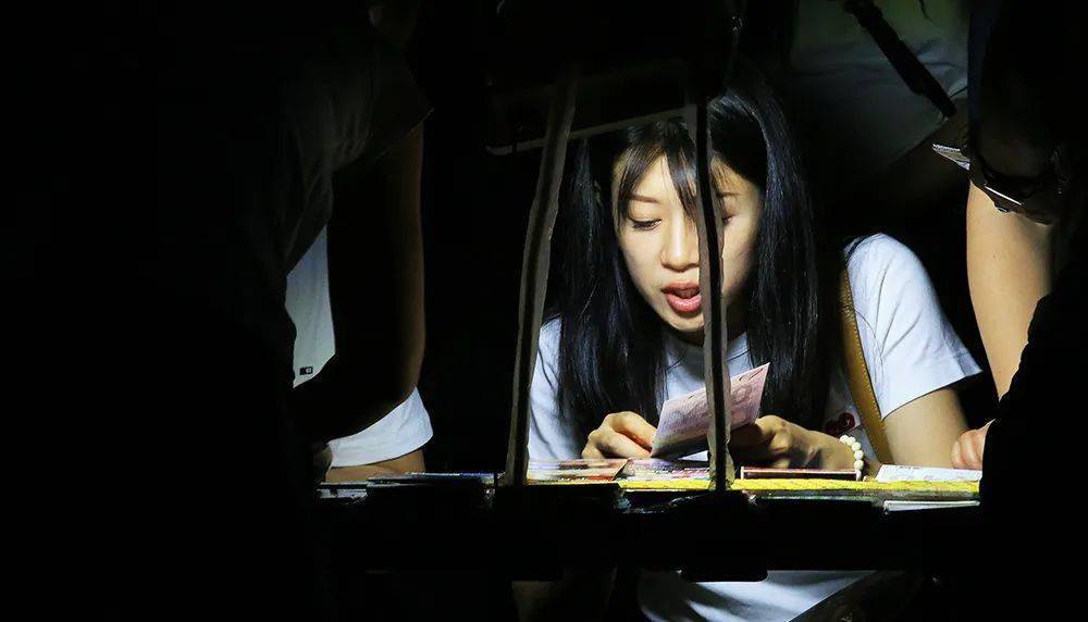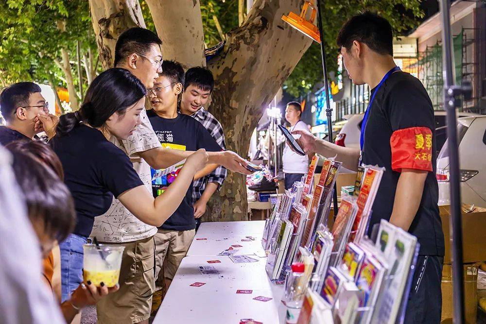 2023年9月12日,郑州,在一处夜市上,市民在刮彩票。