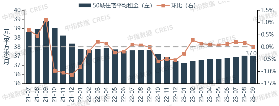 图:2021年7月至2023年9月50城住宅平均租金走势