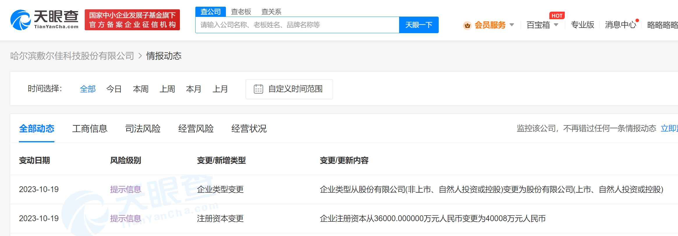天眼查App显示,近日,敷尔佳(301371)发生工商变更,注册资本由3.6亿人民币增至约4亿人民币。
