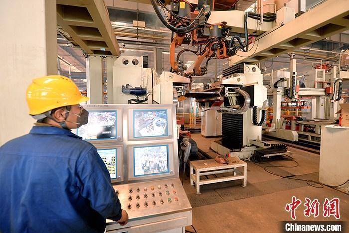 资料图:车间内工作人员进行机器操作。中新社记者 李佩珊 摄